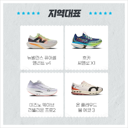 | 지역대표급 | 마라톤 & 장거리 훈련용 | 나이키 ‘페가수스’, 아식스 ‘젤카야노’ |