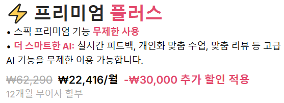 평생이용권은 특히 장기 학습을 고려하는 분들에게 매우 경제적인 선택이 될 수 있으며, 기존 월 정기결제 방식보다 훨씬 저렴하게 장기 사용이 가능합니다. 단, 구매 시 환불이나 양도는 제한되므로 신중한 선택이 필요합니다.