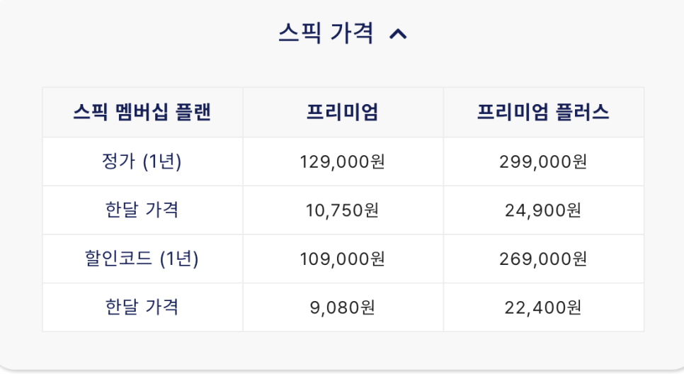 스픽의 멤버십은 프리미엄과 프리미엄 플러스 두 가지로 나뉩니다.