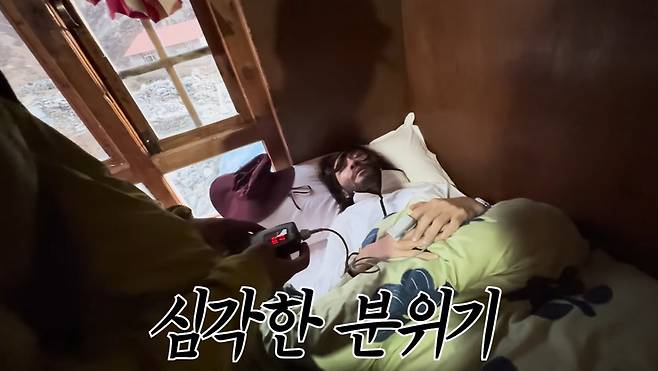 숙소로 돌아온 후 산소포화도를 측정한 결과, 이는 분명한 고산병 증상으로 확인되었습니다. 그의 상태는 매우 나빴고, 침대에서 일어나기도 어려운 상태였습니다. 심지어 트레킹 가이드가 가져다준 생강차조차 "못 먹겠다"고 거부할 만큼 체력이 고갈된 모습이었습니다.