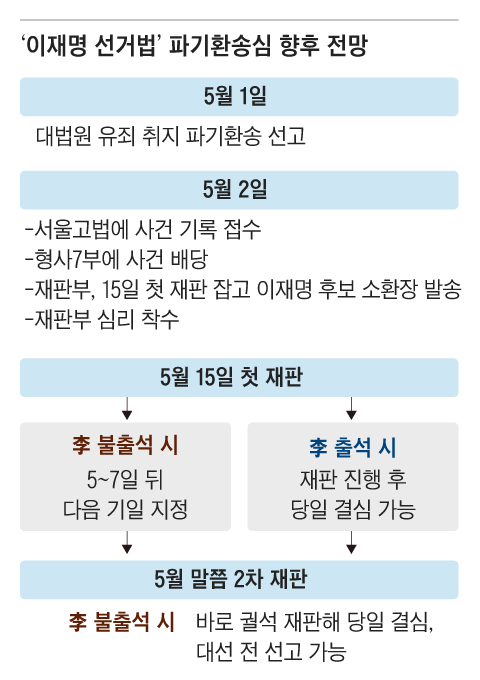 특히 유죄 취지의 파기환송이 이미 내려졌다는 점에서, 공판이 대선 전 완료되지 않는 것이 과연 공정한가에 대한 의문이 제기되고 있습니다.