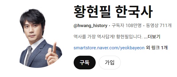 | 유튜브 채널 | 황현필 한국사, 황현필 한능검 |
